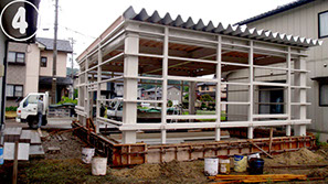 屋根まで組み立てたら、周りをコンクリートで囲います。それに続き、地面にもコンクリートを敷いて行きます。